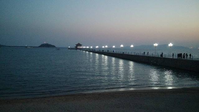 check in后我们开始第一个景点——栈桥由于昨晚我们没计划今天到青岛的路线,所以挑了栈桥看日落~!沿路走,风很大,刚开始栈桥走前去都有很多小摊,但完全天黑后,小摊都没了。。。晚上挺冷的~!从栈桥这边就可以看到对面的小青岛了,栈桥的傍晚还是挺美的,隔岸看着对面的大厦,感觉小青岛的对面就像是维港。。。^ω^