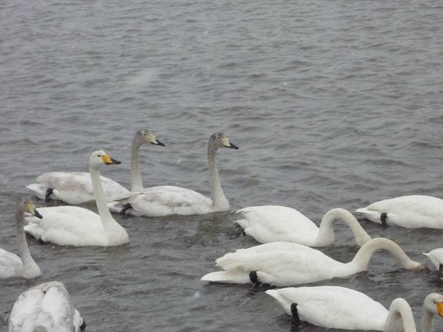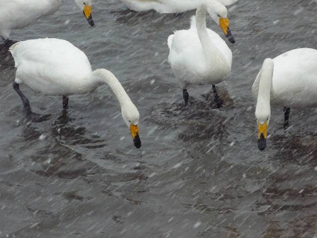 天鹅湖是冬季在威海的一大景色。这是全亚洲最大的天鹅冬季栖息地啊,听说从十一月份开始他们就陆陆续续飞到这里越冬啦~!天鹅,这圣白的东西,也不由得你憧憬一下吧!这边有两个天鹅湖,一个在成山镇,还有个在烟墩角村。如果不是昨天的飞机delay,我们本来打算昨天的第一站就是烟墩角村的天鹅湖(因为那边有芦苇哦~!)从成山头下来,终于看到有车的踪影了,跟司机大哥“撕逼”了一下,价钱是25块/人,然后我们冲着最近的荣成天鹅湖风景区看一下天鹅,门票价每人20元。雪越下越大了,好心的司机大哥送了一袋饺子给还没吃午饭的我们~~(╯﹏╰)b,叫我们在这边逛逛,看看天鹅,大概半小时后来接我们回酒店,怕我们搭不上车。寒风刺骨,但是天鹅的叫声吸引着我们往前走。。。