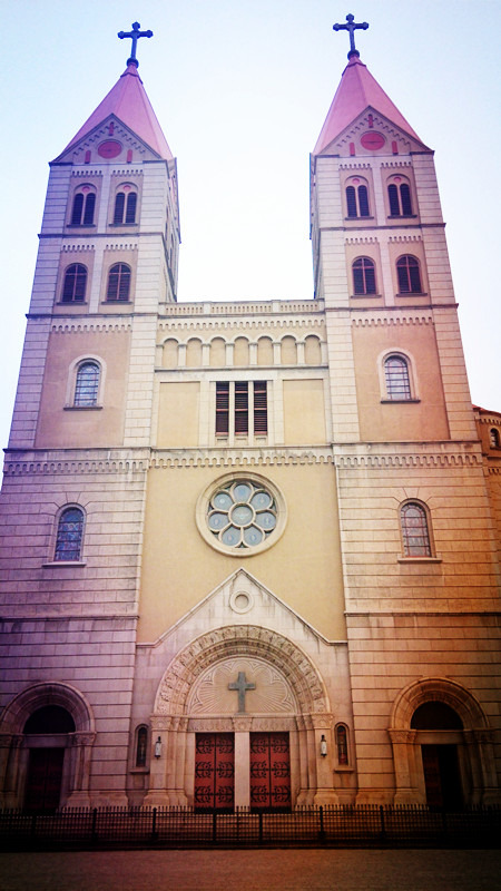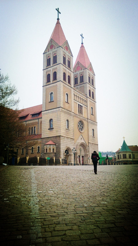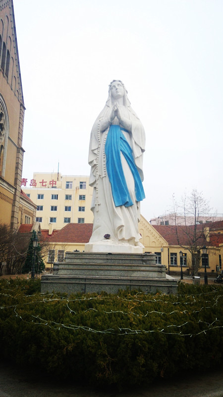早餐过后出发我们的第一站——圣弥爱尔大教堂(天主教堂),一大早就看到有对couple顶着婚纱来拍照了,这个坐落于中山路和浙江路岔口路上的哥德式建筑,也算是青岛的地标性建筑了,星期日是免费开放的哦,平日就10元每人,学生半价啊!!一派欧式情调,喜欢教堂的可人儿一定要来感受一下。。。Y(^o^)Y