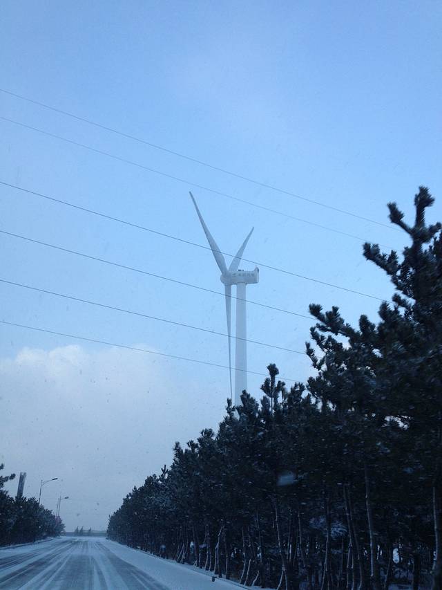 这个好像是由西霞口往环海路走,回威海市区,一路都是用来发电的大风车
