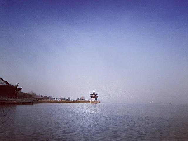晴空万里,水天一色,在这样的美景中人的心情也变得格外爽朗