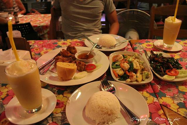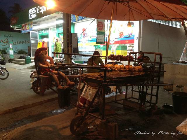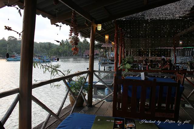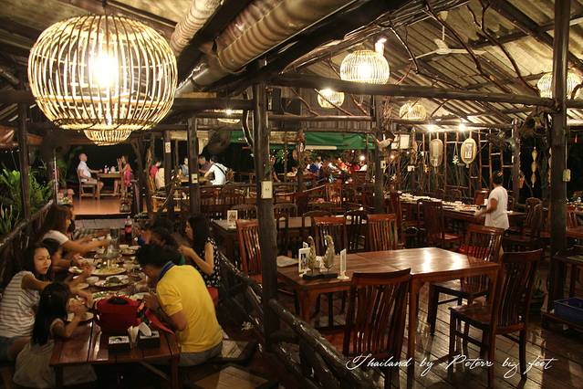 传说在象岛可以看到萤火虫,在那些沿着河流两侧的树丛间。夏天会比较多,但既然来了就去看看吧。坐上pui帮我们叫来的车子,驶向可以看萤火虫的餐厅。来回接送都不用钱,只要在那边吃就可以了。
