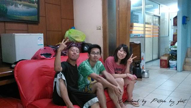 从楼上下来时,这日本妹子用英语对我说了一声“Hello”。楼主前台付完款突然脑残了,觉得应该锻炼一下口语,于是用日语问他们“你们是日本人吗?我以前学过一年日语,不过现在忘了很多了。”这俩见我开口,楞了一下,“才学了一年?一年这个程度已经相当厉害了。”于是我们便在旅馆前台沙发处聊了起来。从他们口中得知,这家旅馆在日本的攻略网上非常有名,难怪这里有大批日本人啊。我们从曼谷聊到中国再聊到日本,聊到311大地震,英语日语一起用。我告诉妹子自己那会本来还有去留学的打算,在长野县,后来311地震就作罢了。妹子对我这日语口语很是称赞,好吧,楼主当年怎么说也是自学三个月就被老师夸发音标准,以及每次考试拿一番的人啊。最后帮乐平当翻译帮拍了张合照,并且教会了他们“谢谢”的正确发音。在异国,随时都可能会发生奇遇。