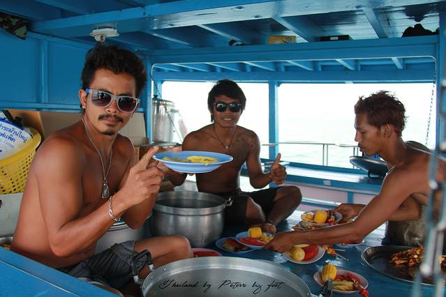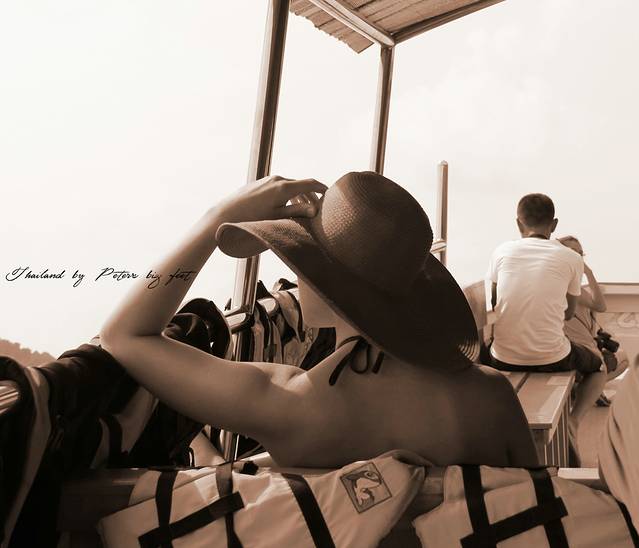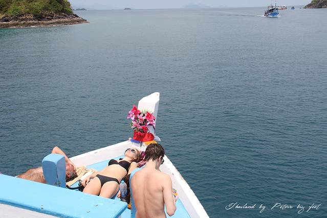 渡船大概要开40分钟,远远的就能看到象岛了,这两天气温不是很高又在海岛,相当舒服。这个老外坐在顶层船头喝着啤酒,觉得他特别惬意,于是上去打了个招呼来了一张。