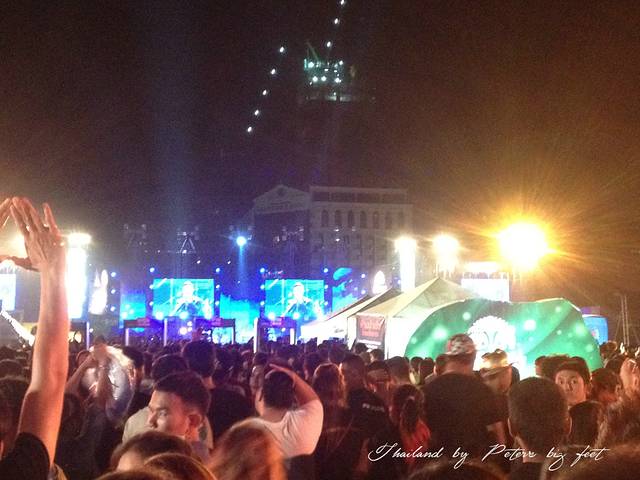 楼主试着往内场走,可惜最多只能走到这里了,继续往前有四扇门可进入内场,还是在外面看看就好了。大屏幕上时而会放出内场的画面,目测单就这个广场就有好几万人呐。外围步行街就更加忽略不计了。当唱到一些在泰国脍炙人口的歌时,泰国人民会高举双手齐声合唱,整个广场沉浸在一片欢乐的海洋之中。