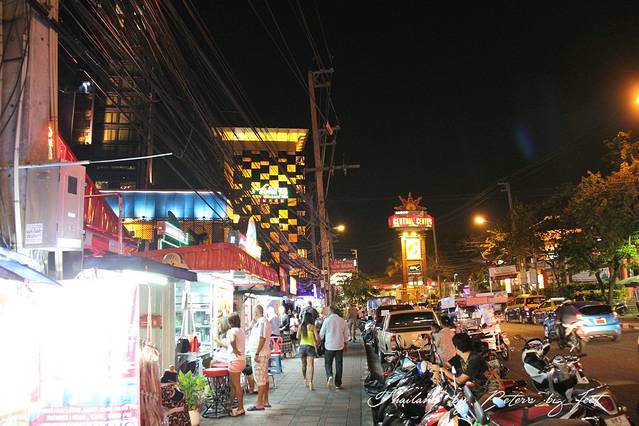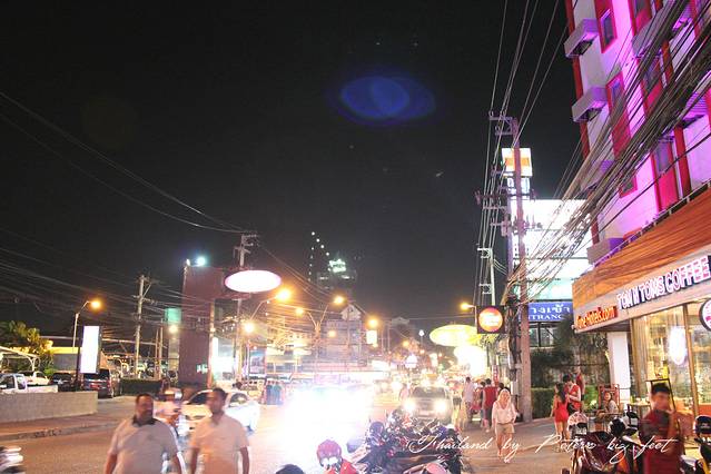 沿着芭堤雅热闹的街道,不久就看到了女老板所说的那家旅馆,并且就在旅馆门口有另一家旅行社,到象岛的票子更靠谱,而且,这前台更是个美女哎!可是当她开口的时候,楼猪的内心瞬间石化了。。。。哥怎么能失态呢?于是毫不在意,继续沟通,人妖哥哥也很耐心地给我讲解了到象岛的一些细节。你这么美,我相信你年轻的时候一定是Tiffany's Show 的成员之一啊。预订完明早到象岛的票子后,我又聊起了音乐节的事。妖哥告诉我们今天大量曼谷的泰国人开车前来,所以大堵车。这不,到达芭堤雅也已经7点了。