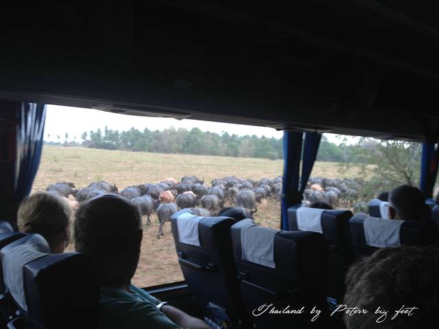 去芭堤雅的大巴上,正逢周末音乐节,公路大堵车啊。司机从各种只有当地人知道的小路绕行速度倒也凑合。忽然车子停了下来,好像有什么奇怪的东西。My god,一大群水牛接近中,大概有上百头,就这样在没人牵引的情况下大摇大摆排着队穿越了马路。