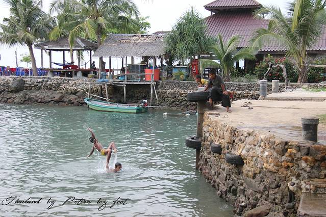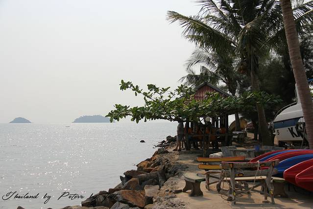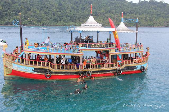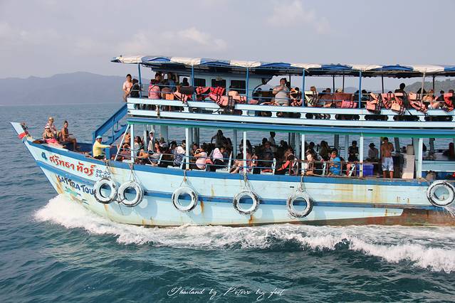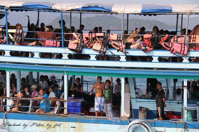 象岛(koh chang),在泰国靠近柬埔寨边境的海上,泰国第二大岛。说起泰国,国人一定知道普吉岛还有苏梅岛,但是对象岛知之甚少,更别提有旅行社组团去那边了。有笑话说普吉岛现在差不多快被操着各种方言的国人占领了,并且商业化比较高。象岛基本都是欧美的背包客以及泰国人自己去度假,相对更原始一点,交通也不是那么方便。于是这次果断选择了象岛,如果出国一趟看到各种举着小旗子听着各种熟悉的方言,那该是个多么悲伤的故事啊。。。网上看到有几个哥们从柬埔寨进入泰国后找不到车子,于是和另外两个欧洲游客搭了辆拖鞋板的便车奔赴象岛,就像这样----