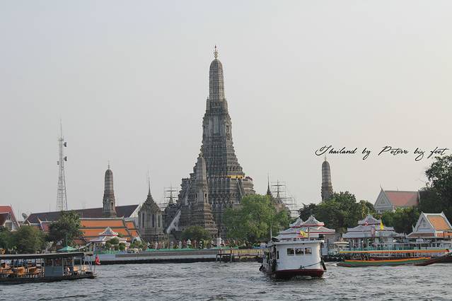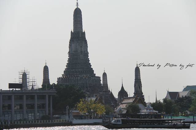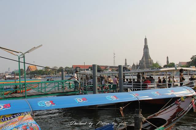 在湄南河上,有许多游船停靠站,双向运载着游客。在这里,可以更清楚地看到对面的郑王庙。大皇宫附近房子普遍较矮,如果登上郑王庙俯瞰,这边的大皇宫、卧佛寺等将尽收眼底。