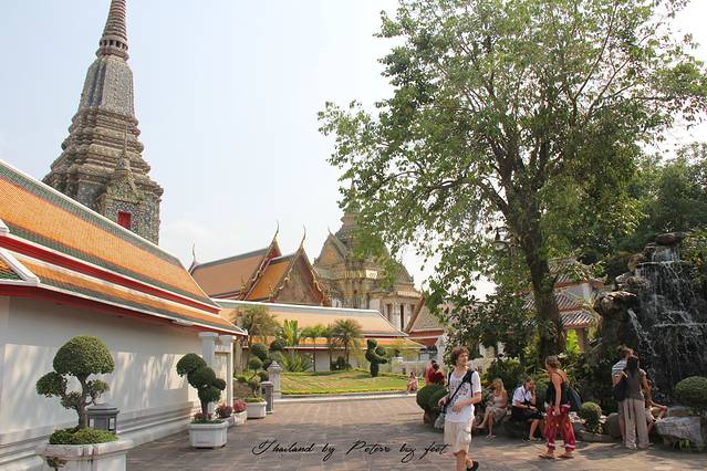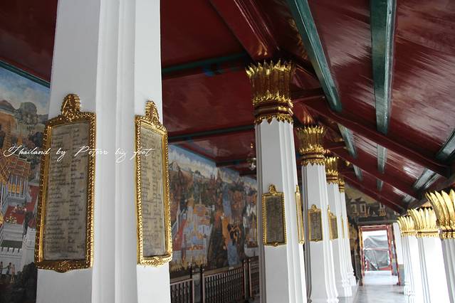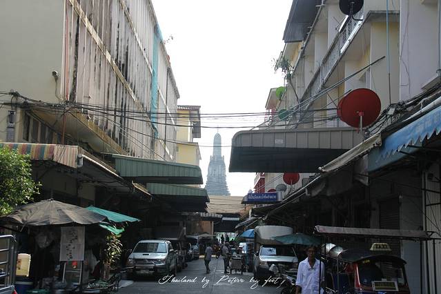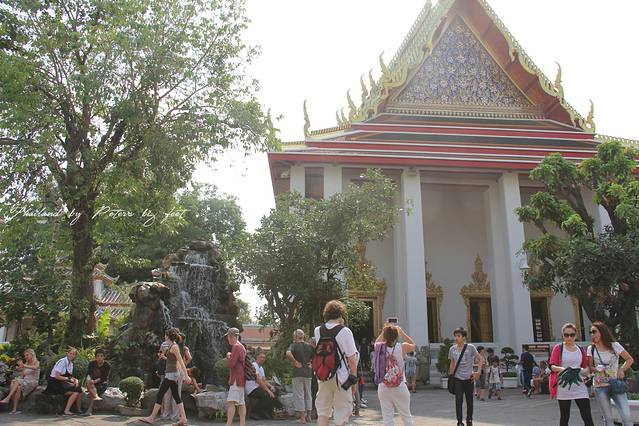 离开大皇宫,一边是白墙,一边是湄南河,夹在这之间的街道非常热闹。而在大皇宫以南紧邻的便是有名的曼谷卧佛寺。
