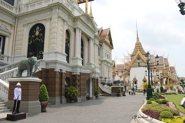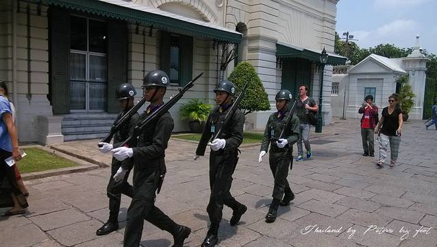 从玉佛寺出来,皇宫这一片有卫兵守着无法进入,可能这片区域现在是官方的办公场所了吧。泰皇现在已经不住在大皇宫了,长期住在华欣。