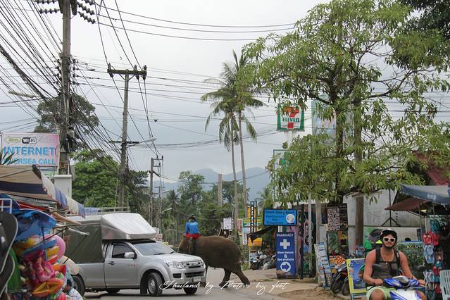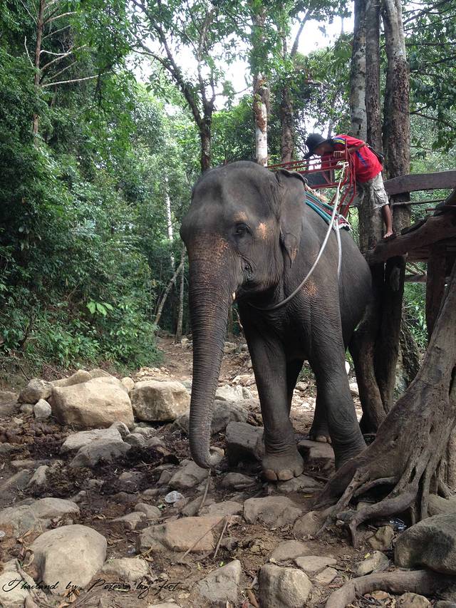 Tips:象岛之前的骑大象项目是超级划算的,长线只要900B,约2小时,这个价格在之前许多提到象岛的游记里都有,不管去哪个象营都会在中途经过小水塘或者是瀑布进去给大象洗澡,报名前咨询下即可,短线虽然便宜但就是带你走走没有玩水的,强烈推荐报长线。去的3月底,发现长线要1500B了,开始以为是店家宰客,后来走了几家旅行社一问才知道,就是从3月开始涨价的,这涨得不是一点啊。。。900B的时代已经过去了,1500B的价格对比清迈的还是相对划算的,但是已经没有以前那么的超值了,可能是象岛慢慢知道的人也多起来了。