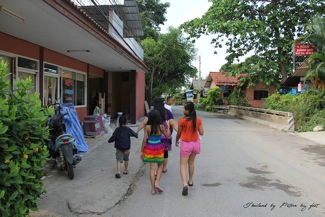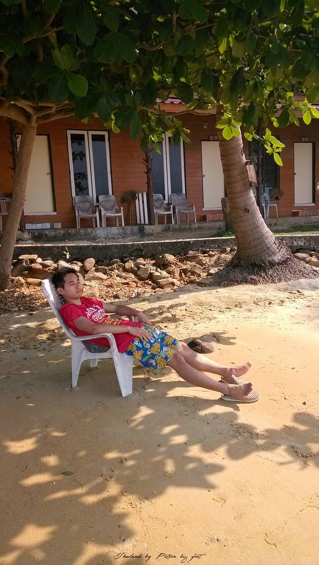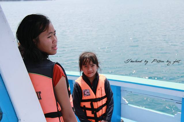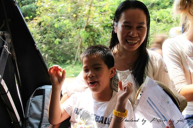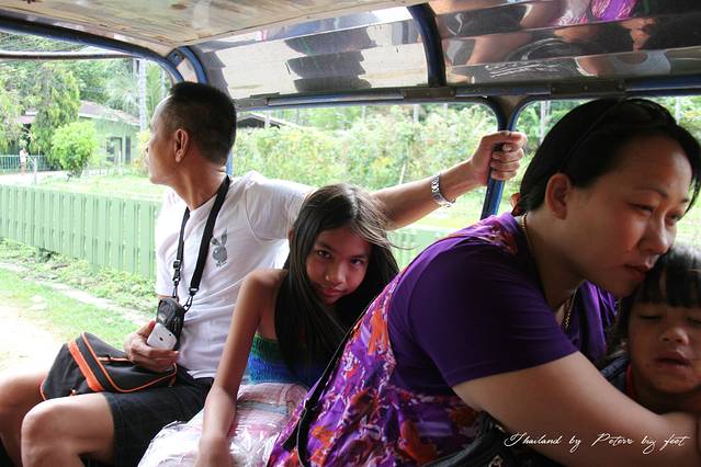 只有这个坐我对面的泰国小鬼超嗨,不管车子如何颠簸,各种顽皮乱动,并且在我镜头下做着鬼脸,他妈妈也笑得合不拢嘴。他们已经第二次来象岛度假了,在靠岛北面开发较早的white sand beach下了车。