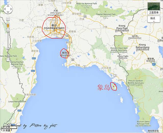 这里普及一下曼谷、芭堤雅、象岛的相对位置。因为出发前楼猪脑袋里就有这么一张地图,然后在前面第一家旅行社我说要去koh chang(象岛),老板娘说坐船、大概2小时到。我一听就发现不对劲了,这么远的距离坐minibus都要四五个小时,坐船2小时打死我不信,这老板娘绝壁地理盲一个给搞错了,我要是傻乎乎买错票明儿死到哪去都不知道了。。。。之后在妖哥的旅行社一问,立即就知道约5小时的车程才是靠谱的,我的人工大脑GPS此刻帮了大忙。