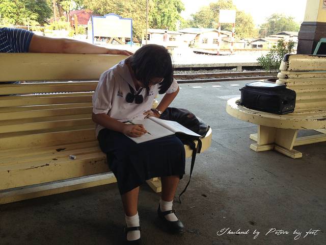 回到候车站,我们一致认为售票的妹子也很养眼。通过这些天的观察,楼主发现了,泰国妹子除了长得黑,五官平均来说确实要比东亚人有特点。在这里我们遇到一对深圳的,也去安帕瓦,可惜不和我们一辆车。