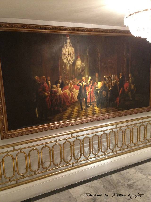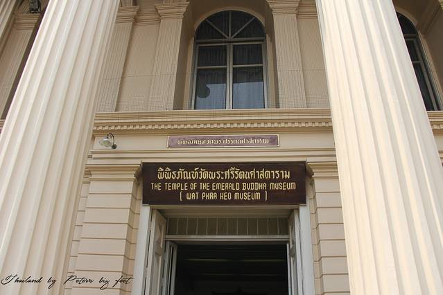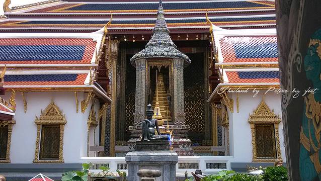 在节基殿斜对面,有一座皇室博物馆,也是No camera。里面通过展板解说了泰国从有记载至今的历史,陈列着拉玛一世到九世的画像,还有许多有关泰国皇室、佛教、历史的书籍可以翻看,同时还有许多当年的皇室用品及收藏。特别是有一个白虎皮的标本,保存得非常好足以吓人,巨大的白象骨、象牙标本同样震撼。在二层有许多皇室的首饰、餐具、器皿等物件的展览,其中有一面高达4米、装饰考究的镜子特别的威武。