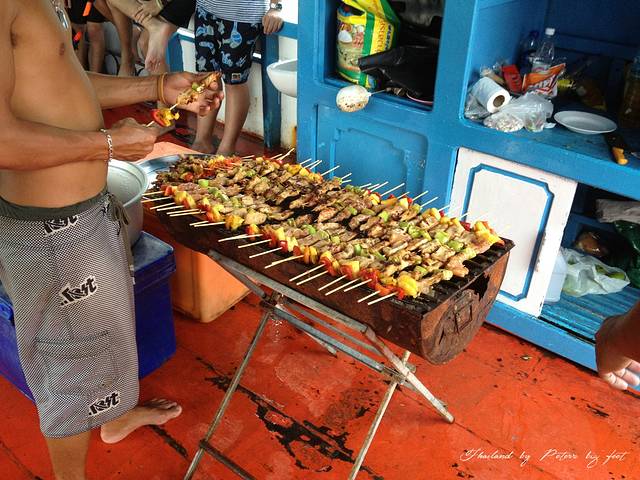 左边的哈萨克斯坦妹子,一个人出来旅游,真正一个人的旅行啊,给个赞,乐平觉得她超美,咳咳,大概我对欧美妹子不怎么感冒吧。我们问她一个人?她说是啊,不过现在有伴了,边说边指指旁边的乌克兰情侣,大家都笑了。这几天乌克兰克里米亚的事闹的很凶,不过在他们脸上看不出任何痕迹,做好自己的事,旅行时只要想着旅行,这就足够了。车上剩下我们这几个后便聊了起来,还学起了中文。他们去的是欧美背包客的天堂lonely beach,于是我们在他们之前的kai bae beach下了车。