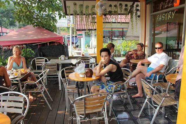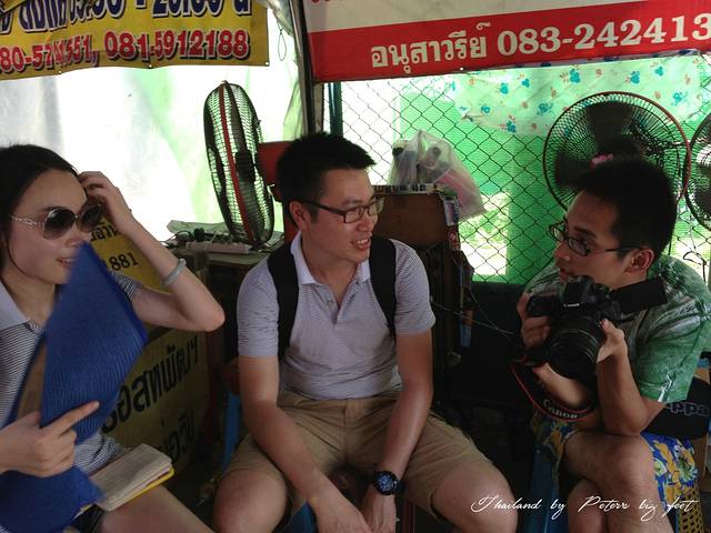 在旅馆前台退房等minibus的时候,见到好几个中国人,得知他们是在泰国孔子学院的老师,这样的学院在泰国大学中很多。见我们等车,便告诉我们泰国人生活节奏很慢,口头禅总喜欢说:慢慢来,迟到什么的就是家常便饭。看看时间我们说好的8点40的车迟迟不来,于是我信了。