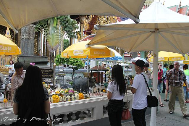 Tips:泰国是佛教国家,烧香拜佛这种事自然是特别多,如果有旅行途中打算也去拜一拜的,不要听黄牛的什么这个最灵验那个最有名啊之类的,把你哄得晕头转向后要你昂贵的香火钱。比如说四面佛,拜的这尊就是全泰国最有名的一尊,位于市中心,都是泰国人自己也去拜的地方,而且上最便宜的一套香只要25B就够了。如果真的有佛祖,老人家普渡众生好意思问百姓要昂贵的香火钱吗?还有就是,乱七八糟的不能乱拜,拜了可能出事,这种东西原本楼主不信,但是一件发生在身边的事让我彻底看傻了,有时间写桂林游记的话会细说。