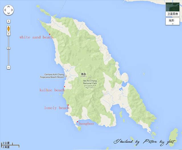 Tips:从图上可以看出几个主要海滩的位置,供你们预订酒店时参考。white sand beach是最北面的一个海滩,开发最早所以配套也是最齐全的,当然相对价格也贵,高档酒店主要集中在这里。 kaibae beach处于中间,开发相对晚一些,没那么多人,也是我选择的住处,因为位置关系去各个项目都还方便。 lonely beach是相对住宿条件最差的,廉价小屋集中之地,欧美的背包客特别喜欢住这里,我也挺喜欢这海滩,喜欢穷游的朋友可以考虑住这里。bangbao渔村位于象岛最南端的邦宝湾内,是出发海上项目的起点,这里也有些民宿可选择,不过注意丛林骑大象的几个点都在中北部,住渔村的话,去北部的活动就远了。其他还有好几个海滩就不多说了。