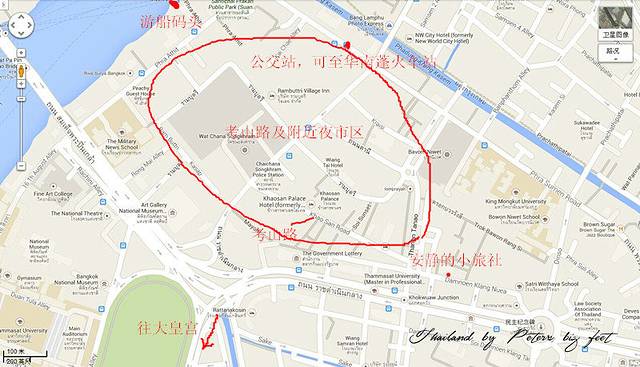 Tips:湄南河上有大大小小超多码头,但并不是所有码头都能坐观光游船,有的码头是用来坐长尾船的,并且有的码头还很隐蔽要从路旁的小巷进去才能找到。如果你在大皇宫附近想坐游船,最稳妥的办法就是找到夹在大皇宫和卧佛寺之间东西向的那条路,笔直向西走到河边的那个大码头就是了。上行下行等待的地方挨得很近,问清楚以免坐反。如果要去考山路,就坐到前面游记地图中有标的那个码头。那个是最靠近考山路的码头。如果对位置没啥概念,那就看码头再往前约30米如果能看到之前晚上拍到的那个凉亭,就没错了。