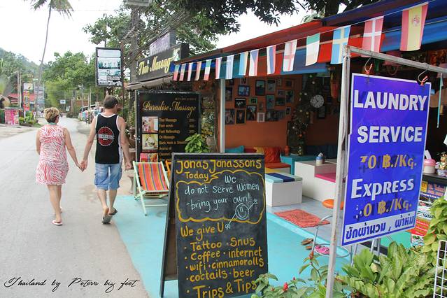 一车minibus上全是老外,确切说其中有一个老外是带着个泰妹去象岛,这种组合在泰国很常见。神奇的是基本上这些个泰妹长的真不好看身材也不行,有些貌似还有些年纪了。租妻,在泰国老外很好这口,为了迎合欧美人的口味,泰妹便把自己晒得黑黑亮亮的。这些妹子可以数学考0分,但各个英语超赞温柔体贴善解人意,于是我貌似有那么懂了一点,长相身材神马都是爹妈给的,但是最关键还是要有女人味。虽然这些天我身边睡着一个汉子,我忍了,但平时绝对无法容忍自己牵着一个和春哥一样的女汉子的手进家门。