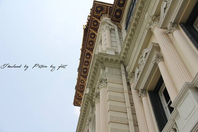 节基殿,皇宫内规模最大的一座宫殿,始建于拉玛五世时期,是国王举行大典的地方。台阶下有卫兵守着,二层以上都不得进入。建筑基本采用了维多利亚时代的风格,顶层则采用了传统的泰式风格,可说是泰西合璧。
