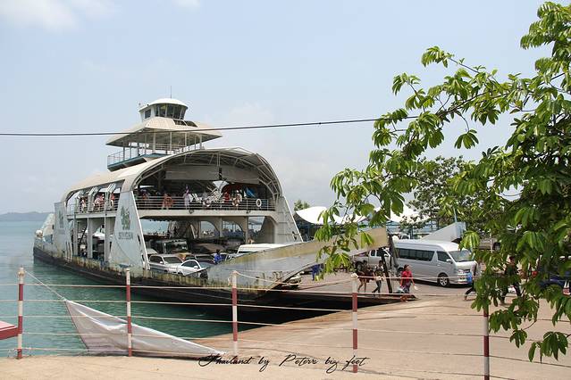 终于到达了至象岛的码头,半个小时一班,果然如预料般船上都是背包客、本地人,没有团队。自己开车过来轮渡的倒是不少,自己有辆车在象岛上玩会非常方便,因为岛相当大,从岛北开到南差不多要一个多小时。