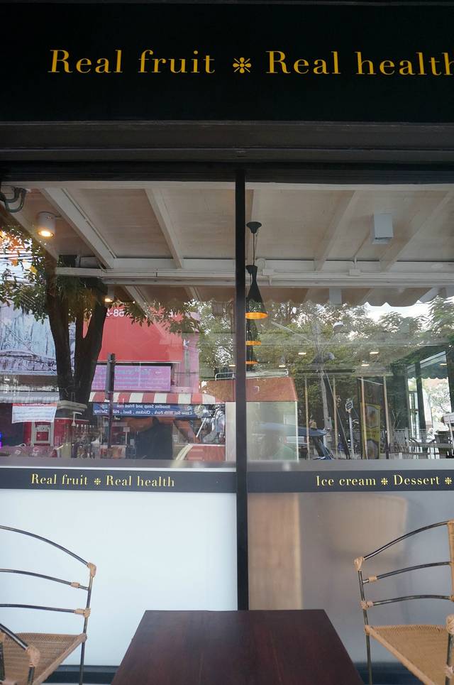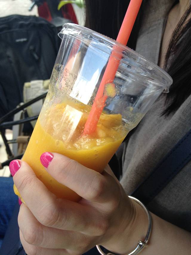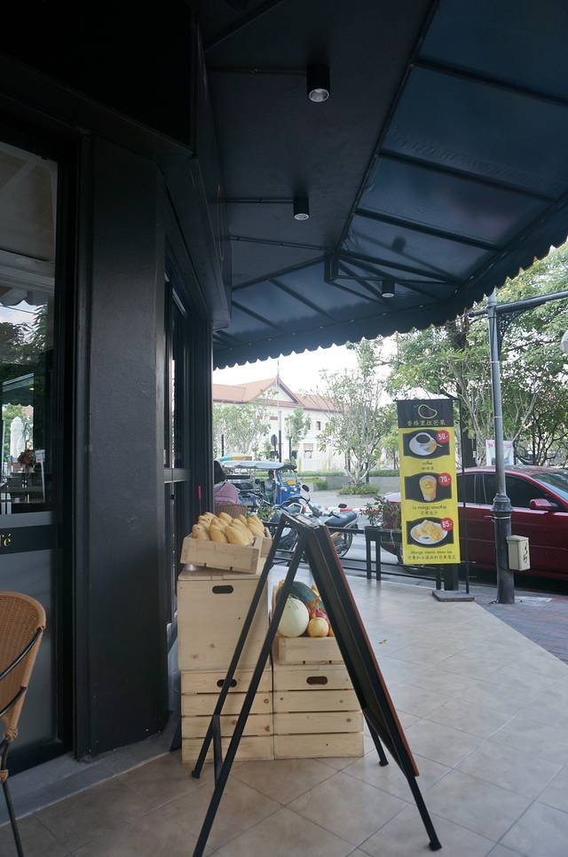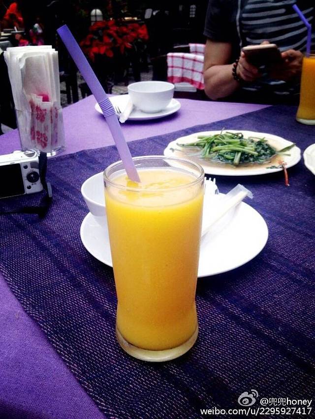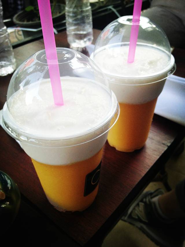 14:26,沿着柴迪隆寺门口的那条路一路向北随意找到了这么一家饮品店,LA MANGO.3杯芒果汁+一份芒果沙冰共计415B,合计一份也就20块RMB,哈哈,味道绝对纯正哦。