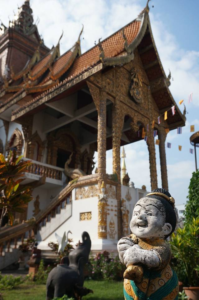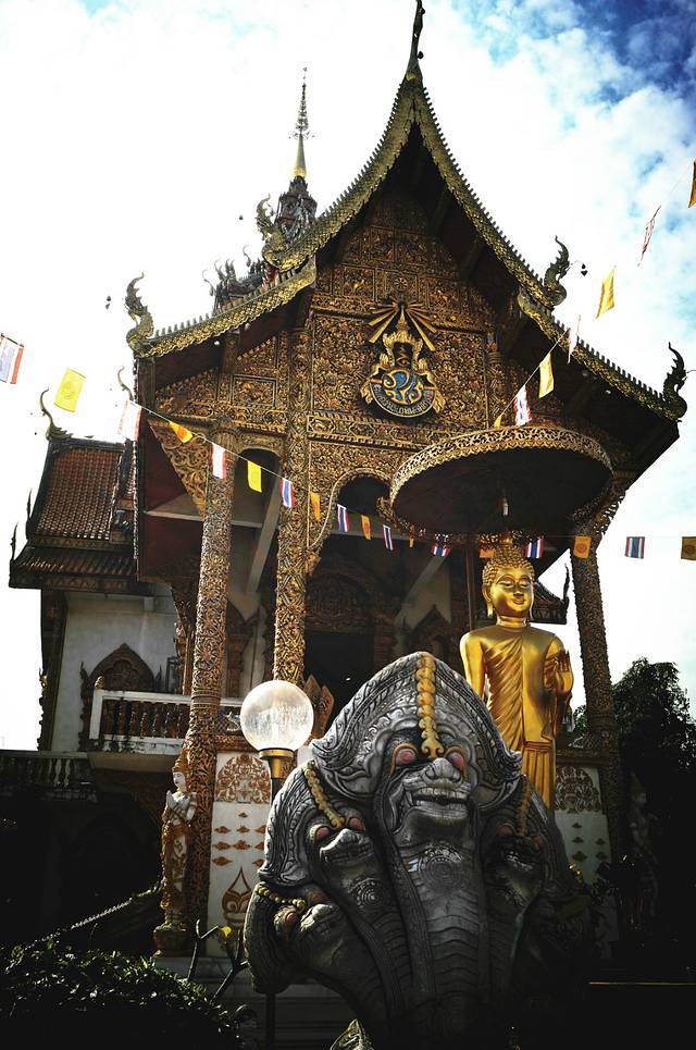 寺庙装修得金碧辉煌,却闹中取静,游人很少,是我觉得寺庙该有的样子清迈的寺庙大多是一栋佛殿一座佛塔的组合形式