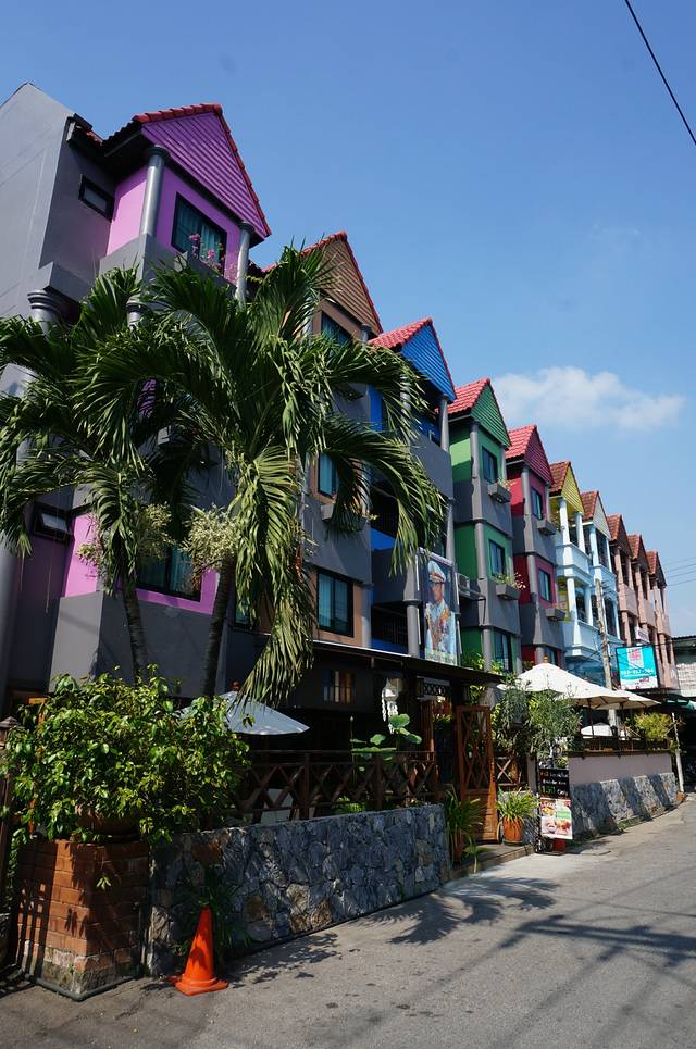 蓝色的天空搭配七彩的建筑外墙,心情想不晴朗都难