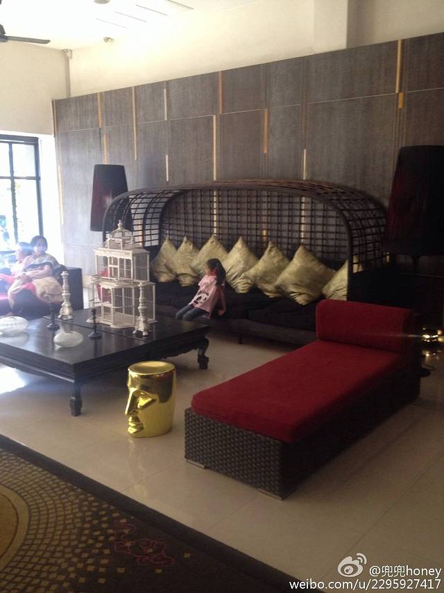 整个区域内草坪占了大多数面积,只有主体几栋东南亚风格的建筑。草坪上几个木片编织的立方体很有建筑范