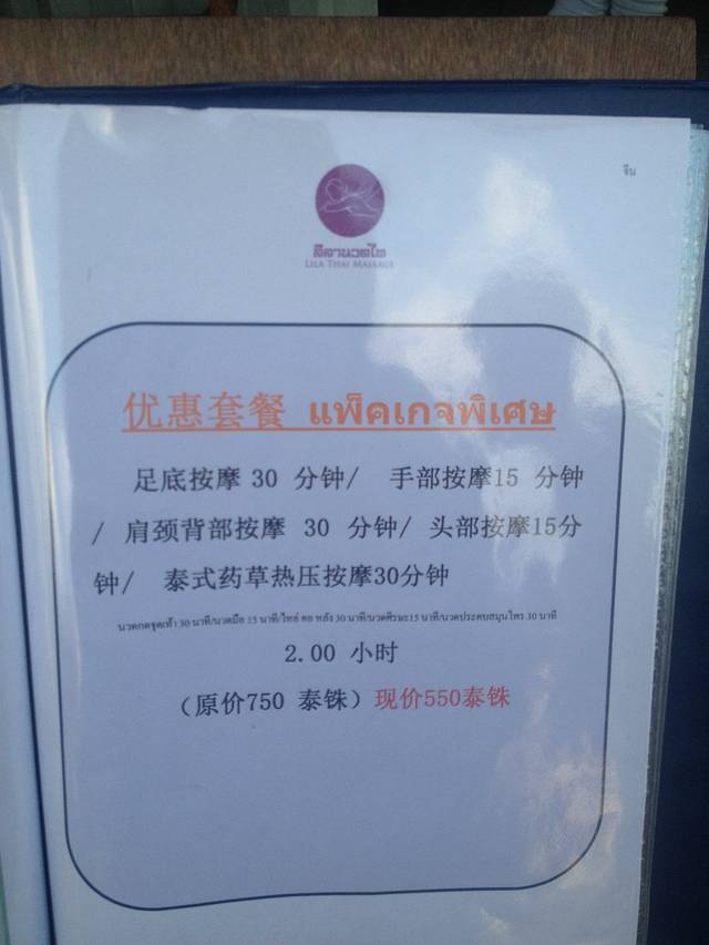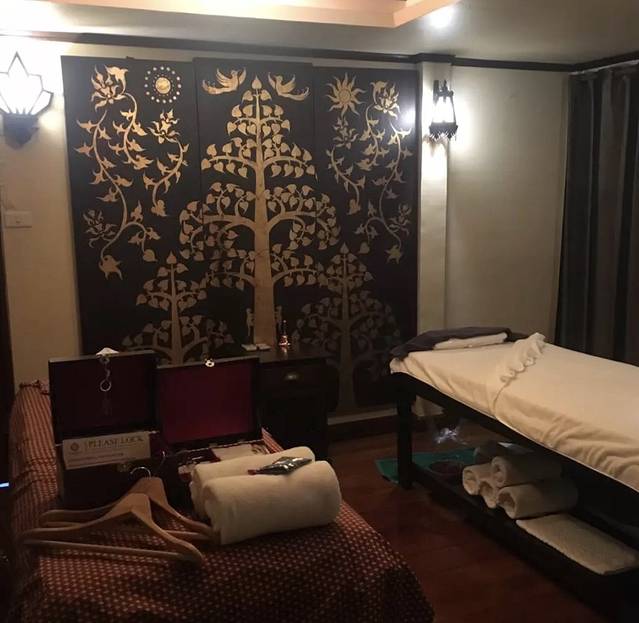 这家呢是要提前预定的,晚上10点就会关门。我们到的那点只能选60分钟的,于是SPA是做不成了,只能选择了泰式草药热敷按摩。