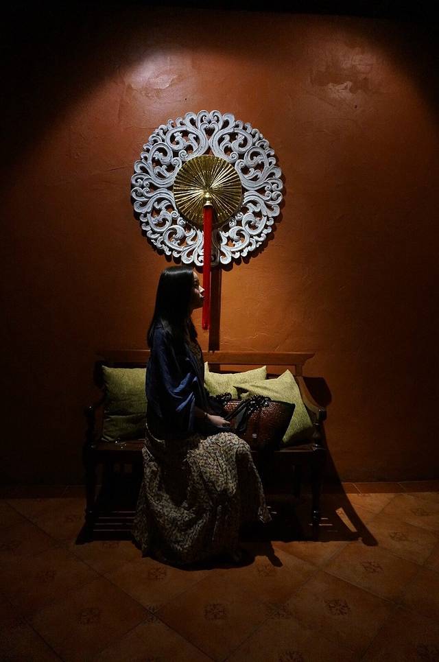 巨型的庙堂式展厅中央高十多米,从大门及两旁泰式木窗渗入的阳光 只能把这漆黑的大堂一角照亮 余下空虚一片的黑暗 给你留下一片无间地狱的联想。