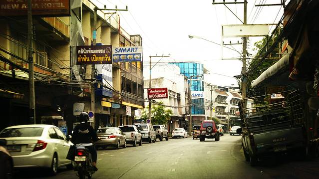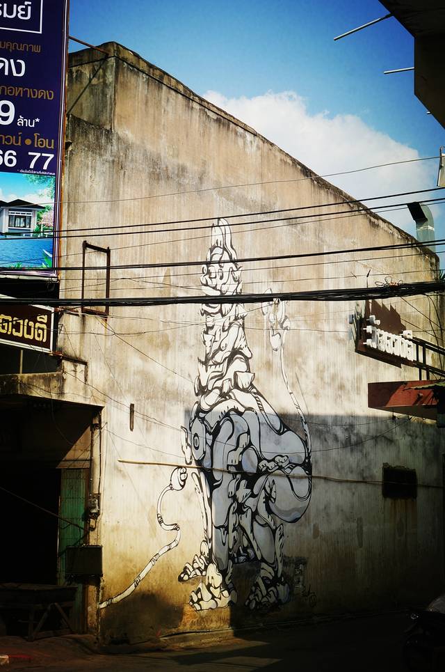 清迈最让我喜欢的就是她的悠闲与不经意的似曾相识。随意的在街上晃晃你就可能被一个小件小工艺品,一处小景致,或一个沿街的咖啡店所吸引,然后驻足半晌,再起身迎着阳光继续溜达下去,一直走到街头,再转个弯随意走到邻街去,反正你永远不用怕走丢,因为这城很小,随手招个满大街都是双条或蹦蹦就能把你带回你想去的地方……