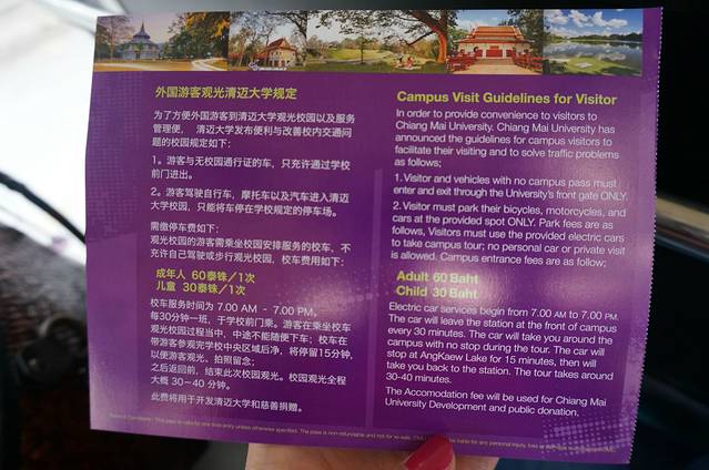 清迈大学的校门小而精致,典型的泰式风情。在清迈大学里,游客是不能在里面随意走动的,所以我们一进校门就被要求坐了游览车,每人60B。