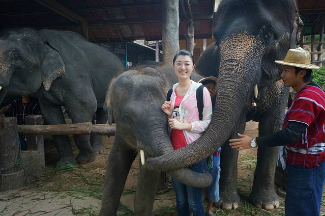 参观美莎大象营我门选择了跟团的半日游(不含午餐),4人是3500B,旅行社会安排小巴来酒店接我们和其他酒店的客人一起去美莎大象营