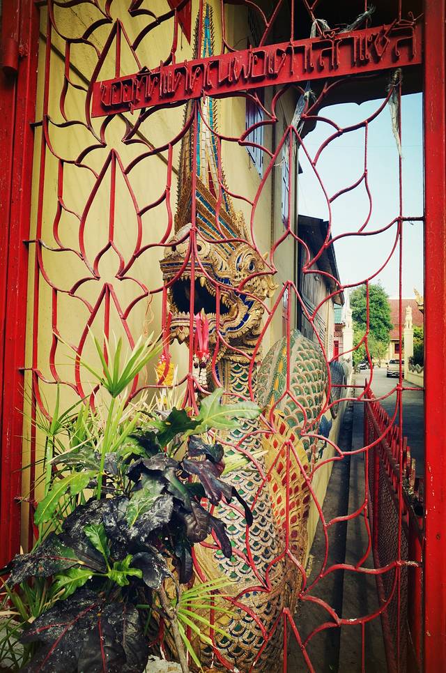 沿着Ratchadamnern Rd.径直向前走就可以遇到这座寺庙。寺庙不大,但是像是刻意装扮了一番不知道是不是有什么节日。