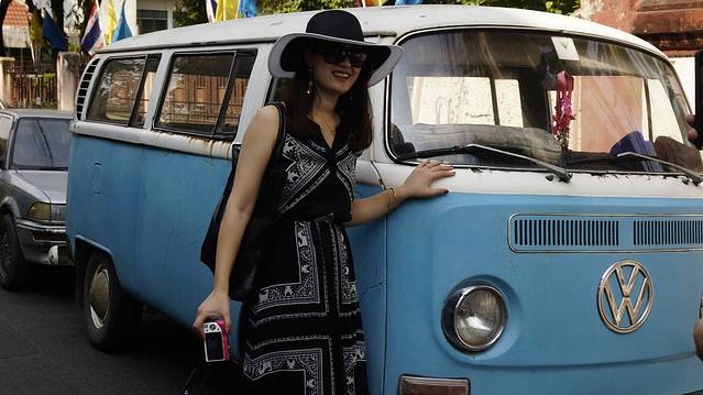 出来后,我们就在清迈大学靠入口处包了辆双条一路沿着山路奔向双龙寺。容易晕车的小伙伴们要慎重,双条盘山还是很晃的哦