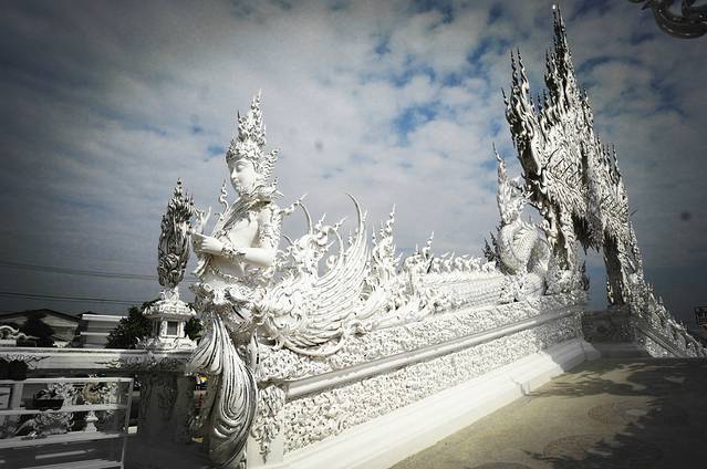 the 3rd day,清莱白庙留影,真的美到爆。由泰国艺术家chalermchai kosipipat自1996年开始修建,但至今未完成。艺术家只接受10000泰铢以内的捐款,只为了保持修建寺院的原始艺术灵感