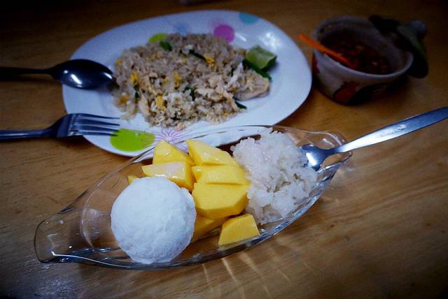心心念念着芒果糯米饭,决定跟小mm再去吃一顿。其实芒果糯米饭,在这里应该算是一道甜点,伴着冰激凌一起放入口中,凉凉甜甜的又把糯米的那股香气掺入进来,真的是……棒棒哒👍
