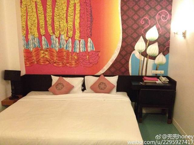 从预定行程到出发总共只有一周的时间,所以很多就点都已经客满,原本想去住一下邓丽君曾经下榻殒命的美平酒店也已同样无望。索性就找个性价比好的小酒店啦,评论里看似蛮艺术性的背景墙和屋顶早餐瞬间吸引了我们,刚好有两间房供我们四人住,OK,就他啦。