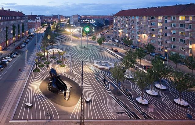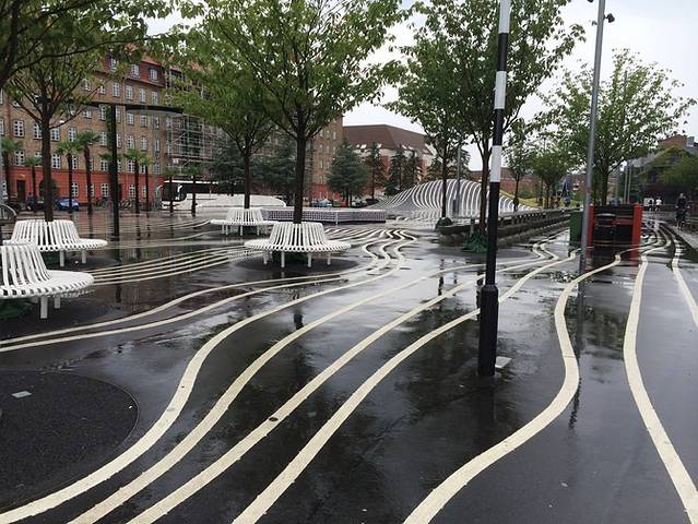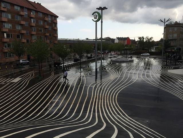 项目是BIG做的Superkilen规划,说是规划,其实就是一个小场地的景观设计,之前在无数建筑景观杂志中看到过,特地为它骑车到快郊区的位置,但因为下雨,效果没有想象中的好,但是作为公园和广场设计,已经非常非常牛逼,在现实世界中,你很难看到这么酷炫的广场。。。