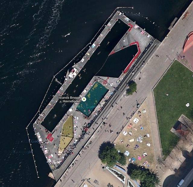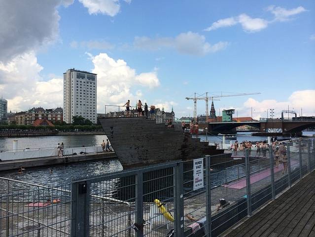这个项目位于哥本哈根内河,名字叫Islands Brygge。这个项目之前在一个景观杂志中见到过,当时在做一个滨水景观的项目,查了很多案例,这个当时也是印象很深刻,只是不知道就在哥本哈根。我们是骑车去克里斯安自由城的路上偶然碰到的。我特地在谷歌上截了个图。这个水边的游泳池对市民免费开放,有浅池和深池,外加一个跳台。 跳台设计得非常好,很多小朋友会尝试从各个高度往下跳。当然这个是在人相对少的北欧,要在国内估计要被挤爆了。。。