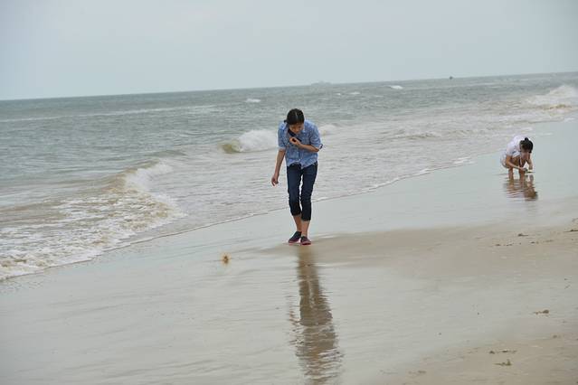 第一次到海滩边上玩,我们玩的很开心。捡了贝壳。