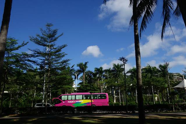 我们做20多个小时的火车,从长沙到海口火车站。海口的风很大,所以我们临时调整计划到三亚。