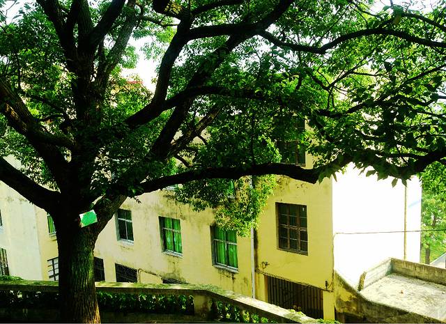 [二中]楼顶形成了天然的观景台,要从一个小天井爬上去