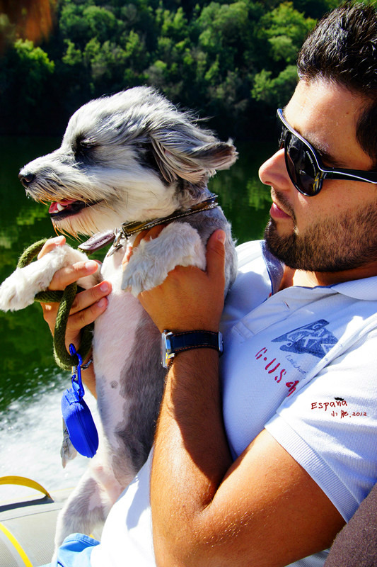 年轻人是BOSS的儿子一辈. 都跟狗狗玩扔球去了...