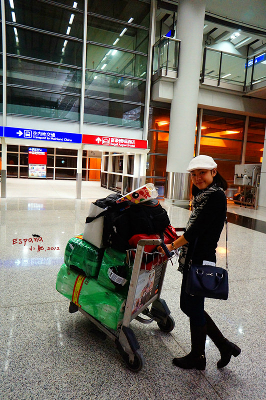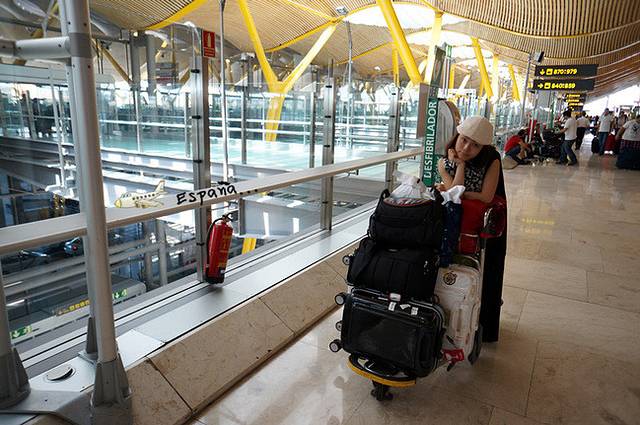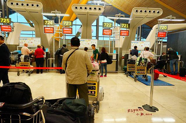 马德里机场CHECK IN... 等待的人群里有小小的两个我们...