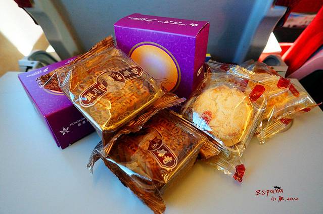 中秋当天香港客运的班机返回南宁. 机上赠送了奇华的月饼和酥饼...